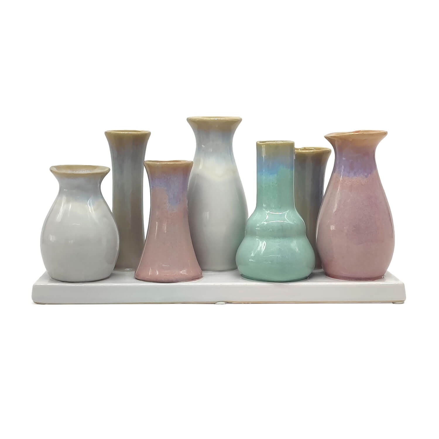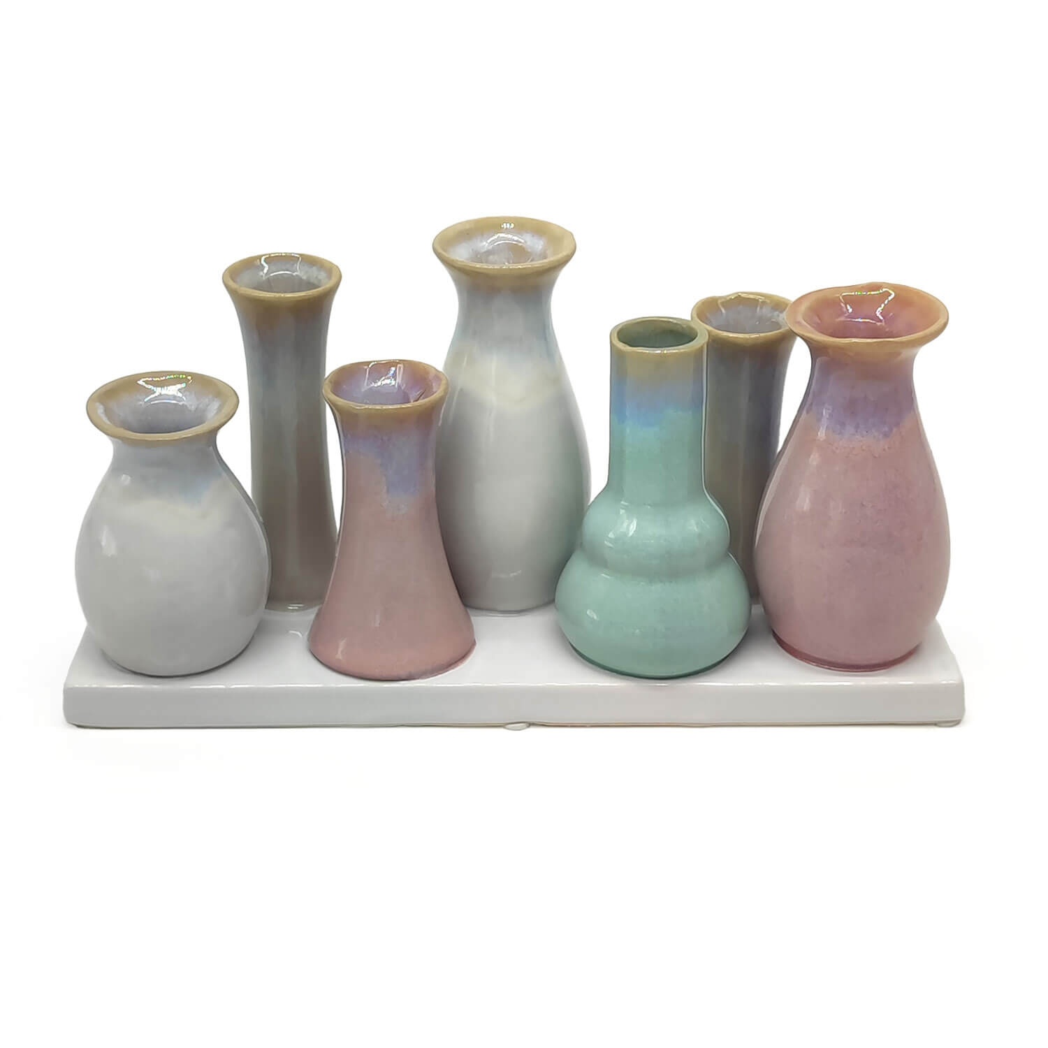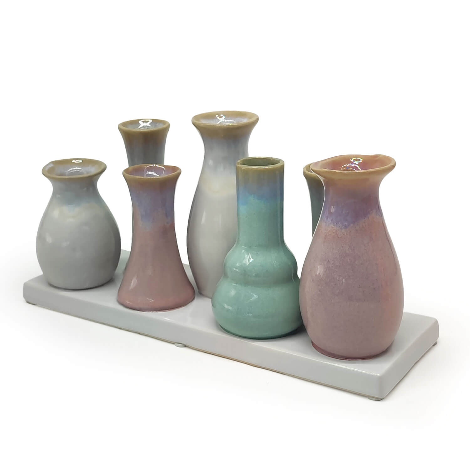 7 Väschen GROß auf Tablett aus Keramik multicolor