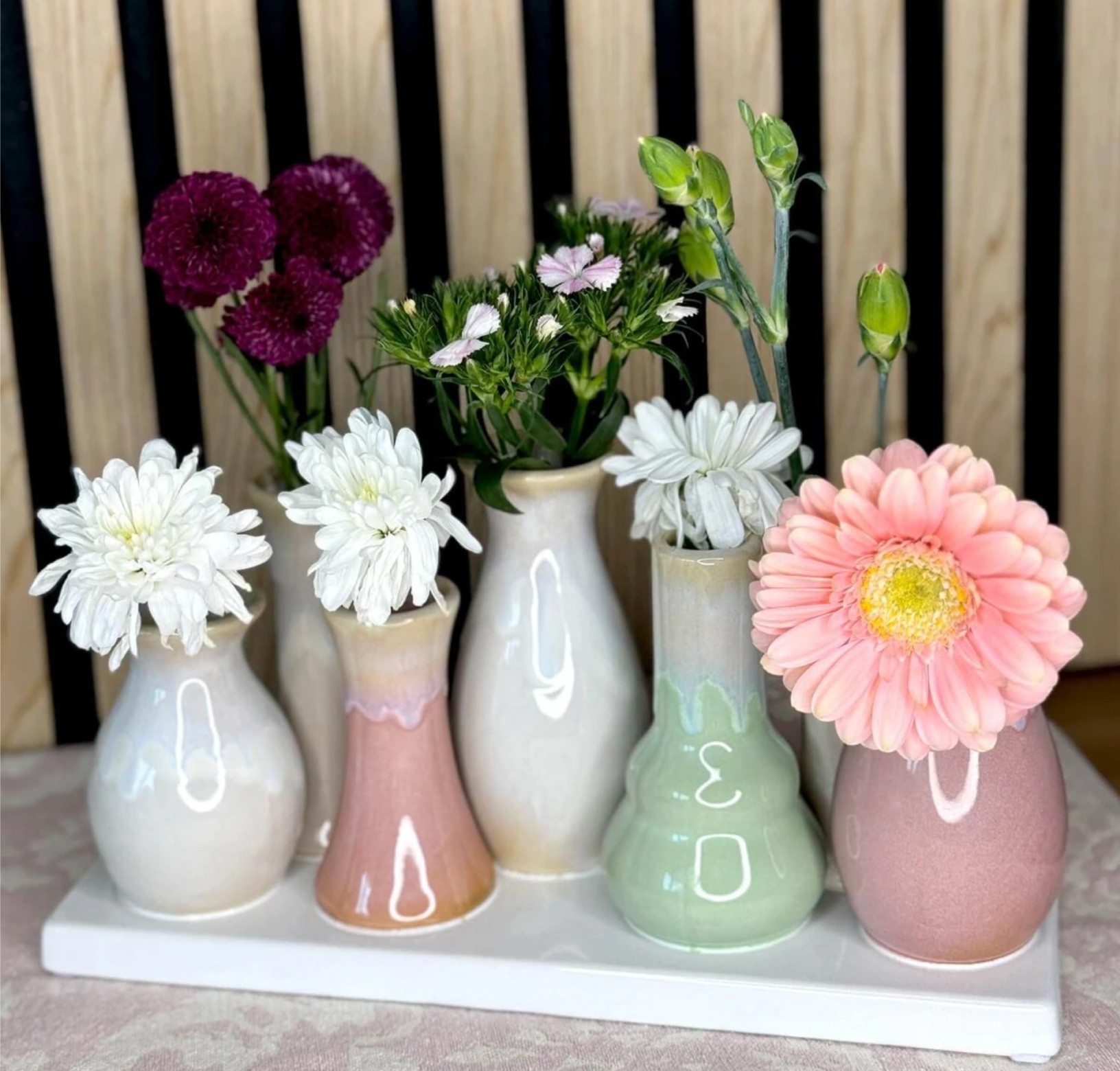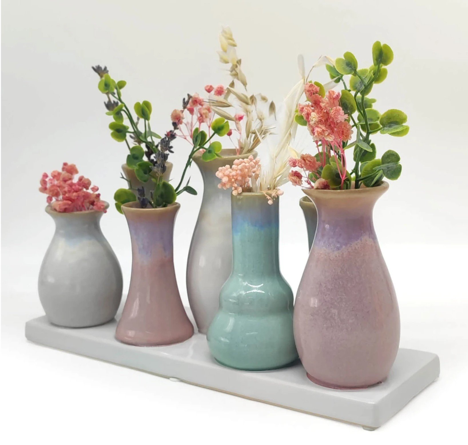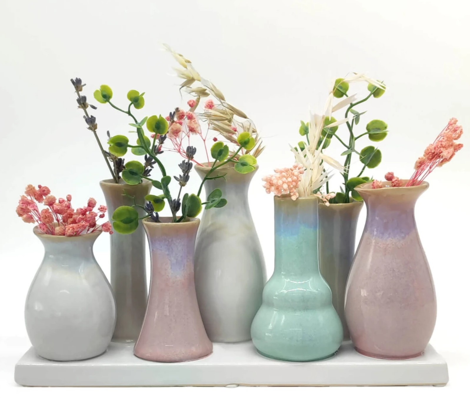 7 Väschen GROß auf Tablett aus Keramik multicolor