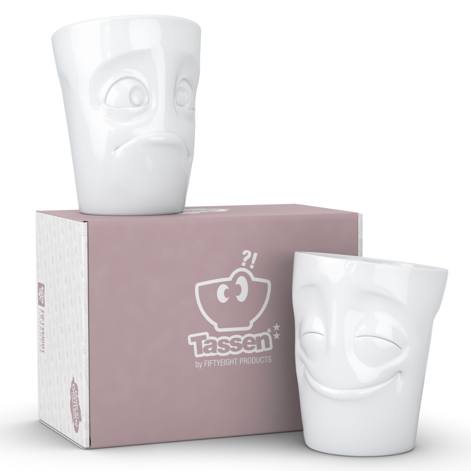 Das 2er-Kaffeebecher-Set von fiftyeight „vergnügt & verdutzt“ lässt Dich jeden Tag angemessen starten.