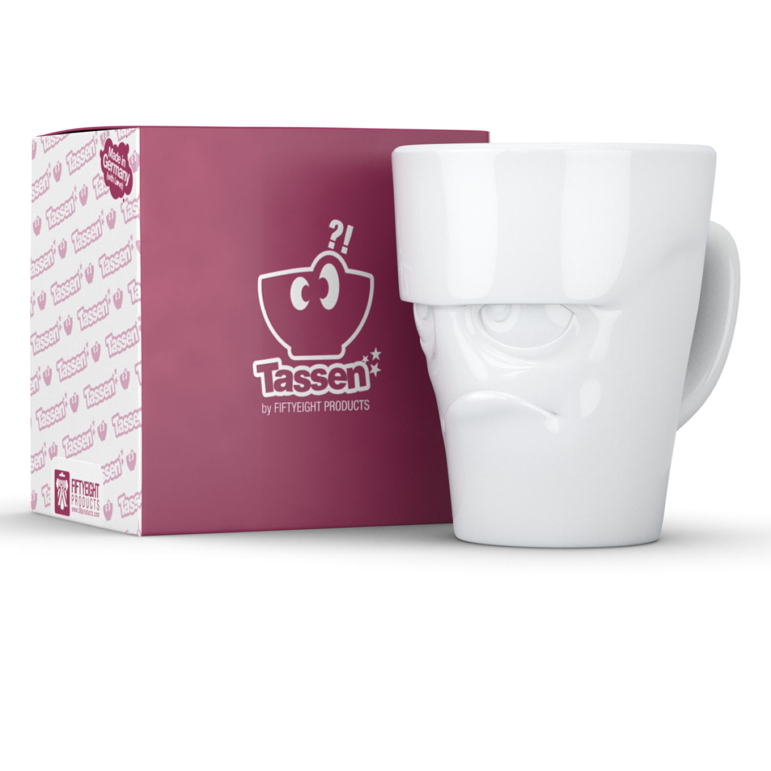 Wer jetzt noch morgens grummelig ist, hat keine Ausreden mehr: Mit seinem grummeligen Grinsen erleichtert der Henkelbecher „Grummelig“ den gut gelaunten Start in den Tag.