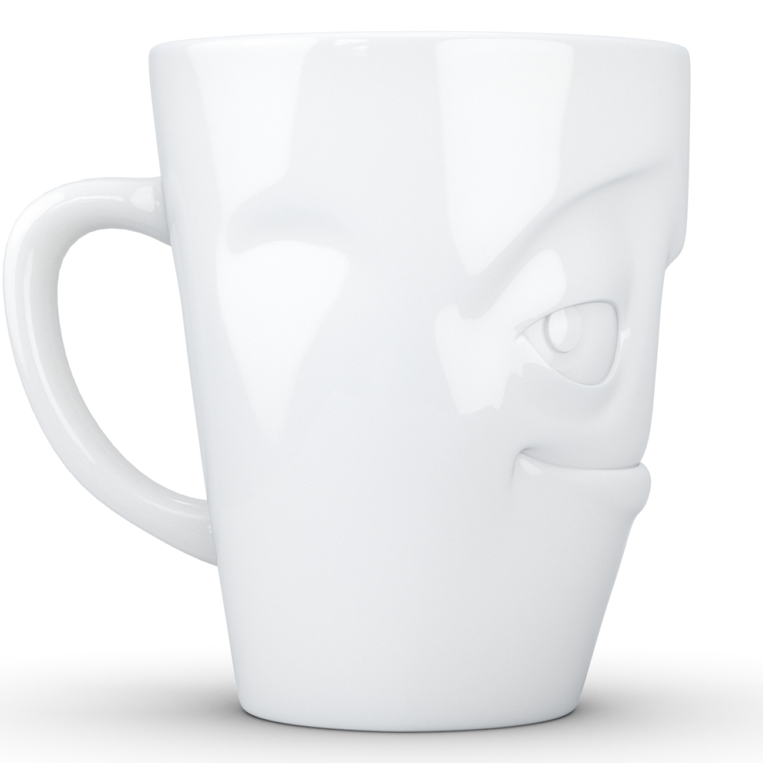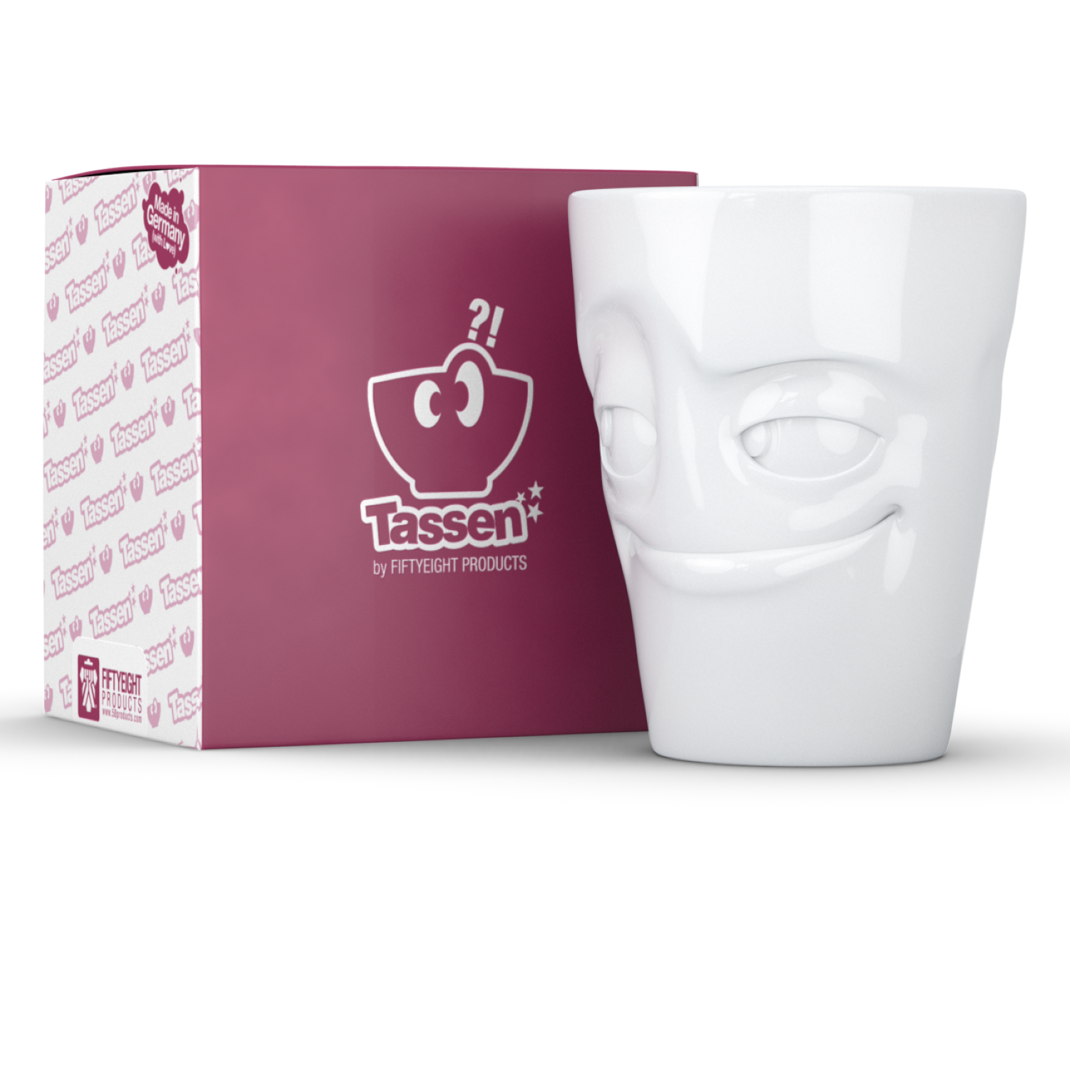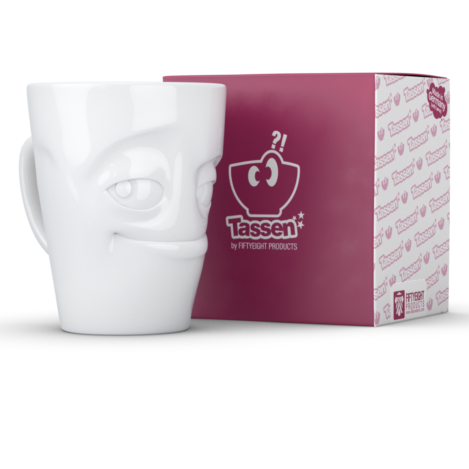 Wer jetzt noch morgens grummelig ist, hat keine Ausreden mehr: Mit seinem extrabreiten Grinsen erleichtert der Henkelbecher „Verschmitzt“ den gut gelaunten Start in den Tag.