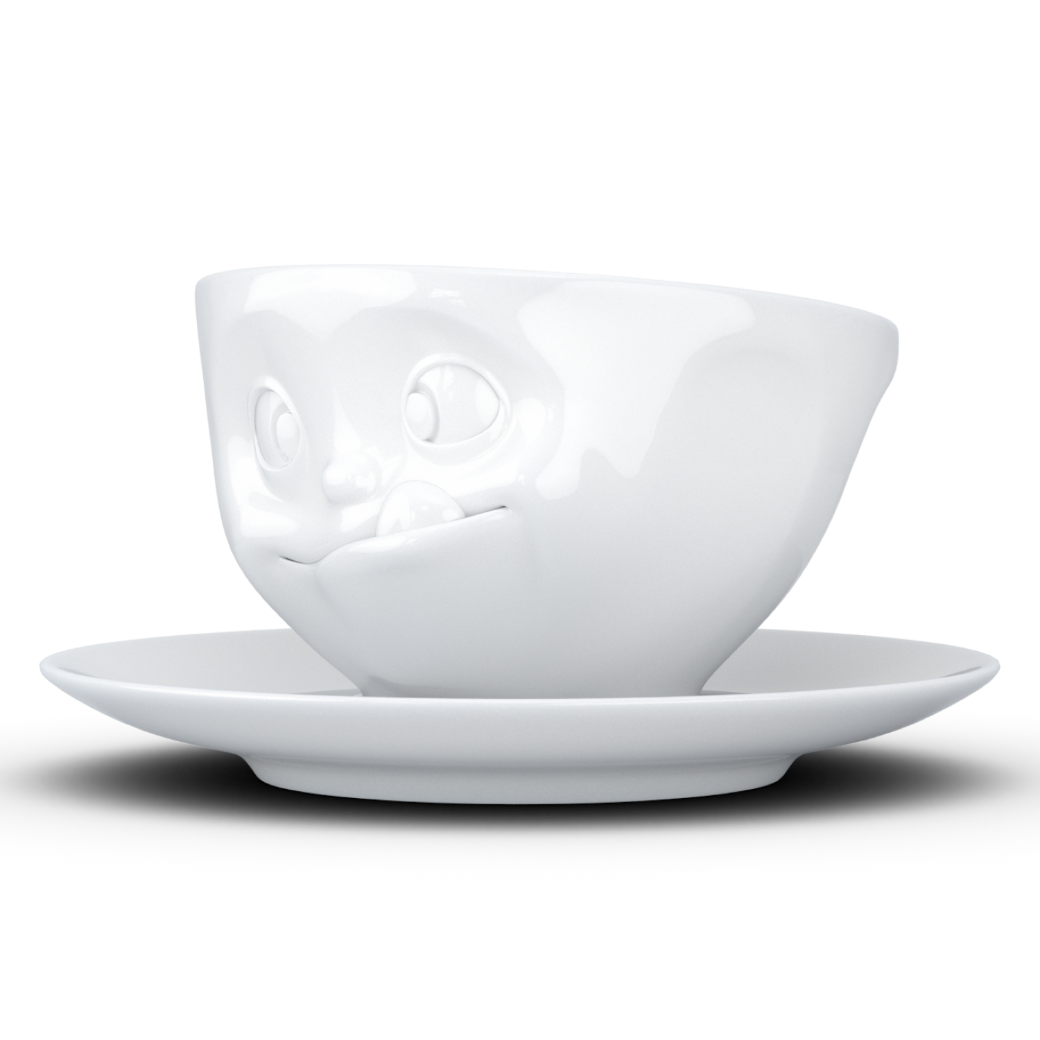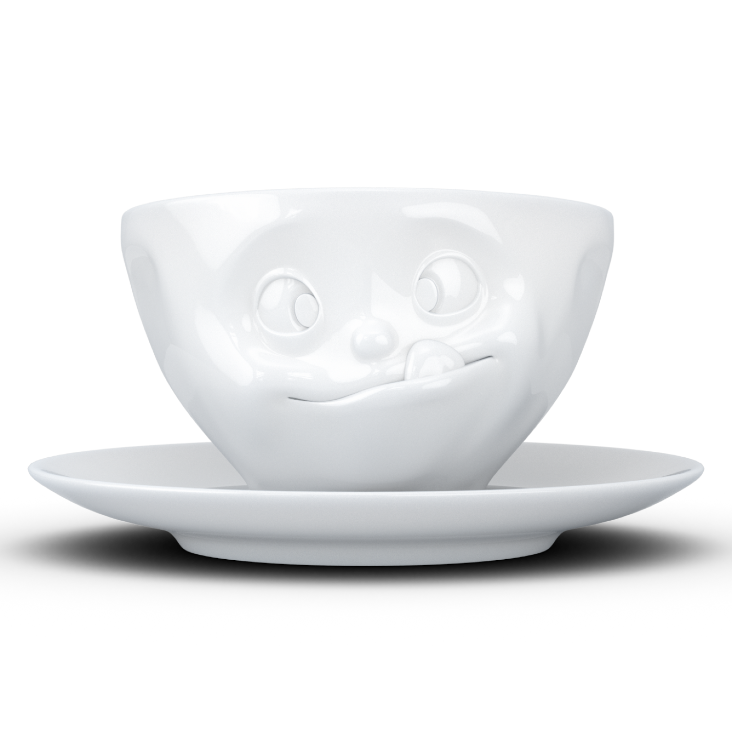 Kaffee-Tasse & Unterteller "Lecker", Hartporzellan, weiß