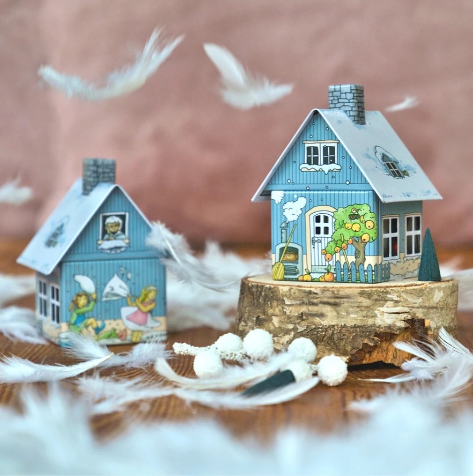 Metall-Räucherhäuschen Frau Holle mit integriertem Räucherkerzenhalter