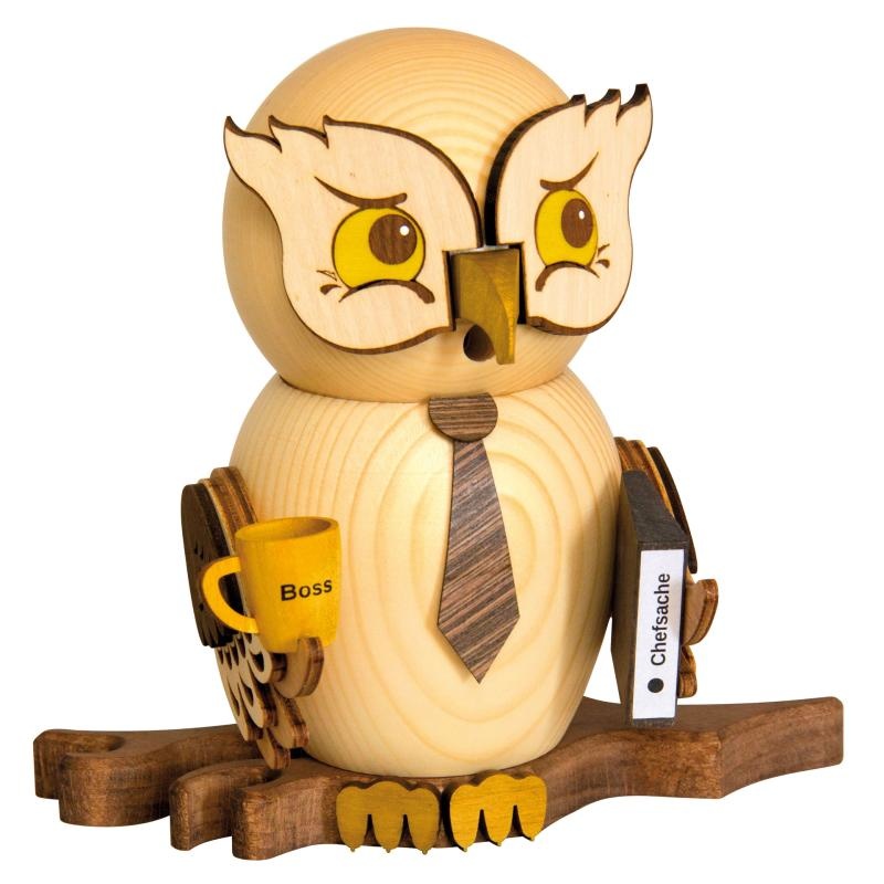 Sie ist ca. 15 cm hoch und kann mit Räucherkerzen in Standardgröße bestückt werden. Der Duft bleibt Ihre Wahl: im Sommer verscheuchen sie lästige Mücken mit Zitrusdüften, im Advent erfreuen unsere Eulen ihr Umfeld gern auch mit Weihrauch- und Tannenduft.