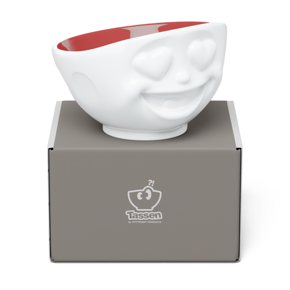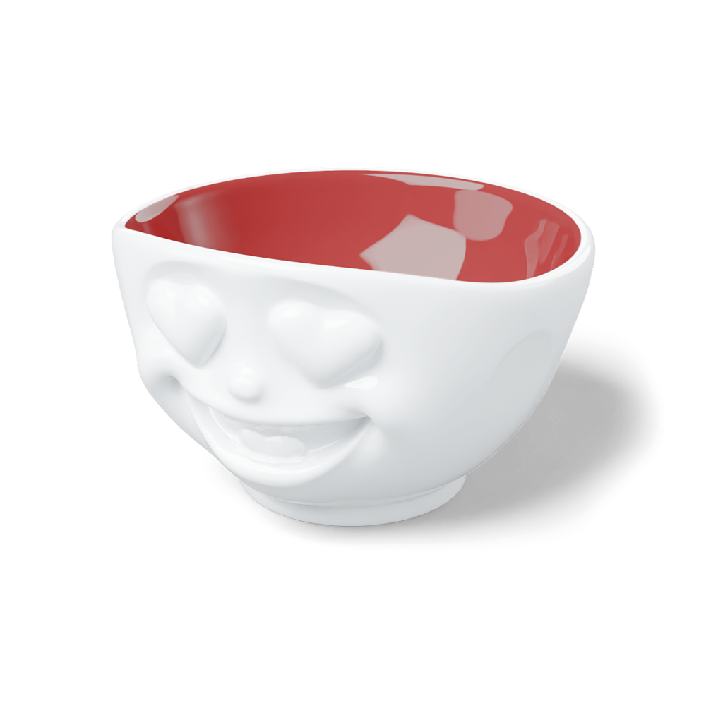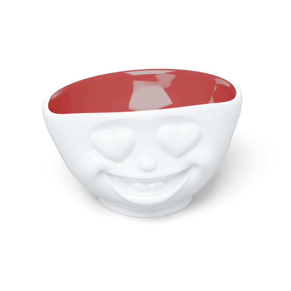 Diese entzückende 500 ml Müslischale mit einem süßen Gesicht bringt Freude auf den Frühstückstisch. Die weiße Porzellanschale ist im Inneren mit einer kräftigen Rubinfarbe überzogen, die einen schönen Kontrast zum neutralen Außenbereich bildet.