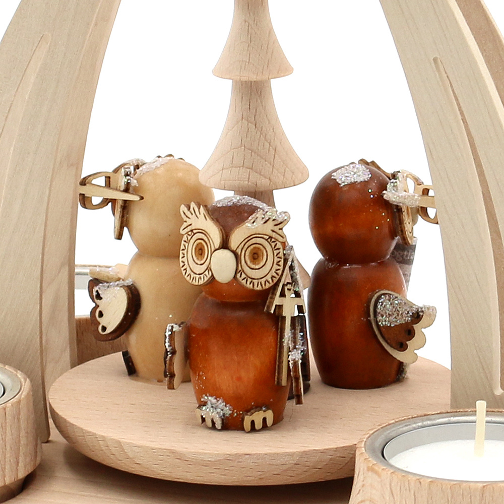- Motiv: "Eulenwald", Maße: L/B/H: 18 x 14 x 24 cm. Mit vielen kleinen liebevollen Details verziert. Das obligatorische Flügelrad wird durch die Wärme der brennenden Teelichter betrieben. Sie erhalten eine ganz besondere und liebevoll hergestellte Weihnachtspyramide, welche mit viel Liebe zum Detail angefertigt wurde. Ausgewählte Materialien "deutsches Buchenholz", feinste Handarbeit und ein liebevolles Design sind eine wunderschöne Deko-Idee für jedes Heim.